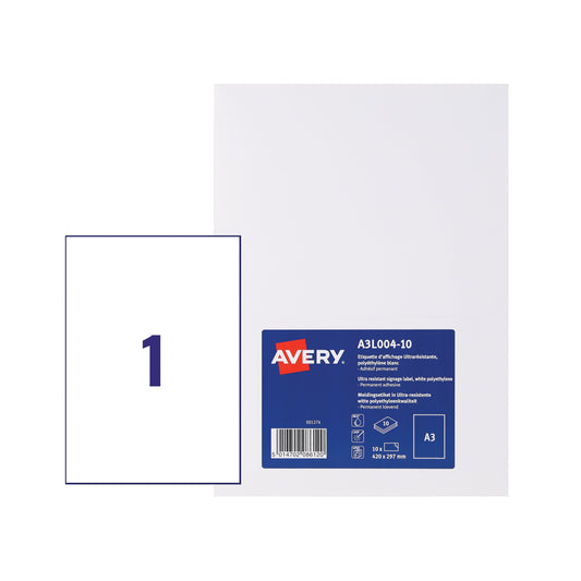 Avery Display Label A3 Permanent White Weatherproof (Pack 10 Labels) A3L004-10
