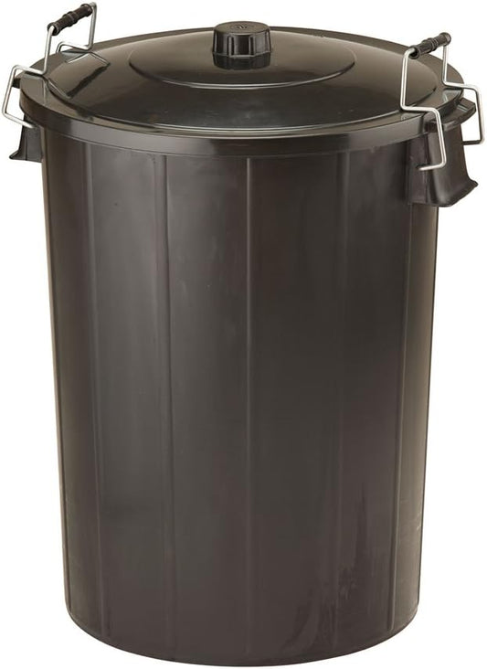Fixtures Refuse Bin with Lid and Metal Clip Handles 80 Litre (Black) (GN346)