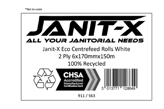 Janit-X Eco 100% Recycled XL Centrefeed Rolls White 6 x 150m CHSA Accredited