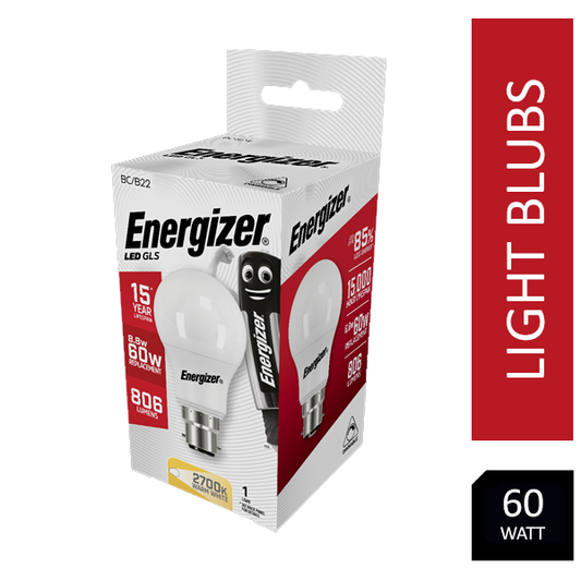 Energizer BC/B22 GLS 8.8/60W 2700k | Warm White LED Bulb | 5 Pack +1 Free