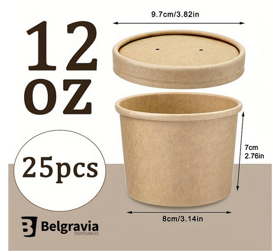 Caterpack 12oz Kraft Soup Bowls & Lids Pack 25's