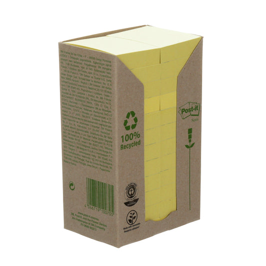 Post-it Recycled Notes 76 mm x 127 mm Canary Yellow (Pack 16) 7100172248