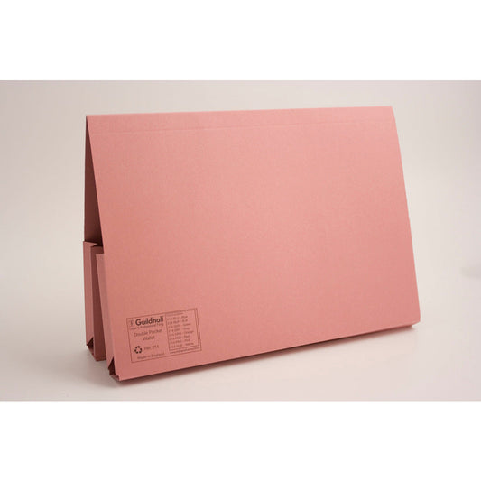 Guildhall Double Pocket Legal Wallet Manilla Foolscap 315gsm Pink (Pack 25) - 214-PNKZ