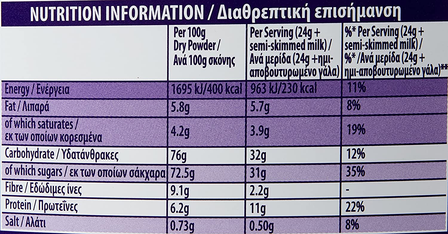 Cadbury Drinking Chocolate is a delicious hot chocolate drink. For that perfect cup sprinkle three heaped teaspoonful into a cup of hot milk and enjoy.
