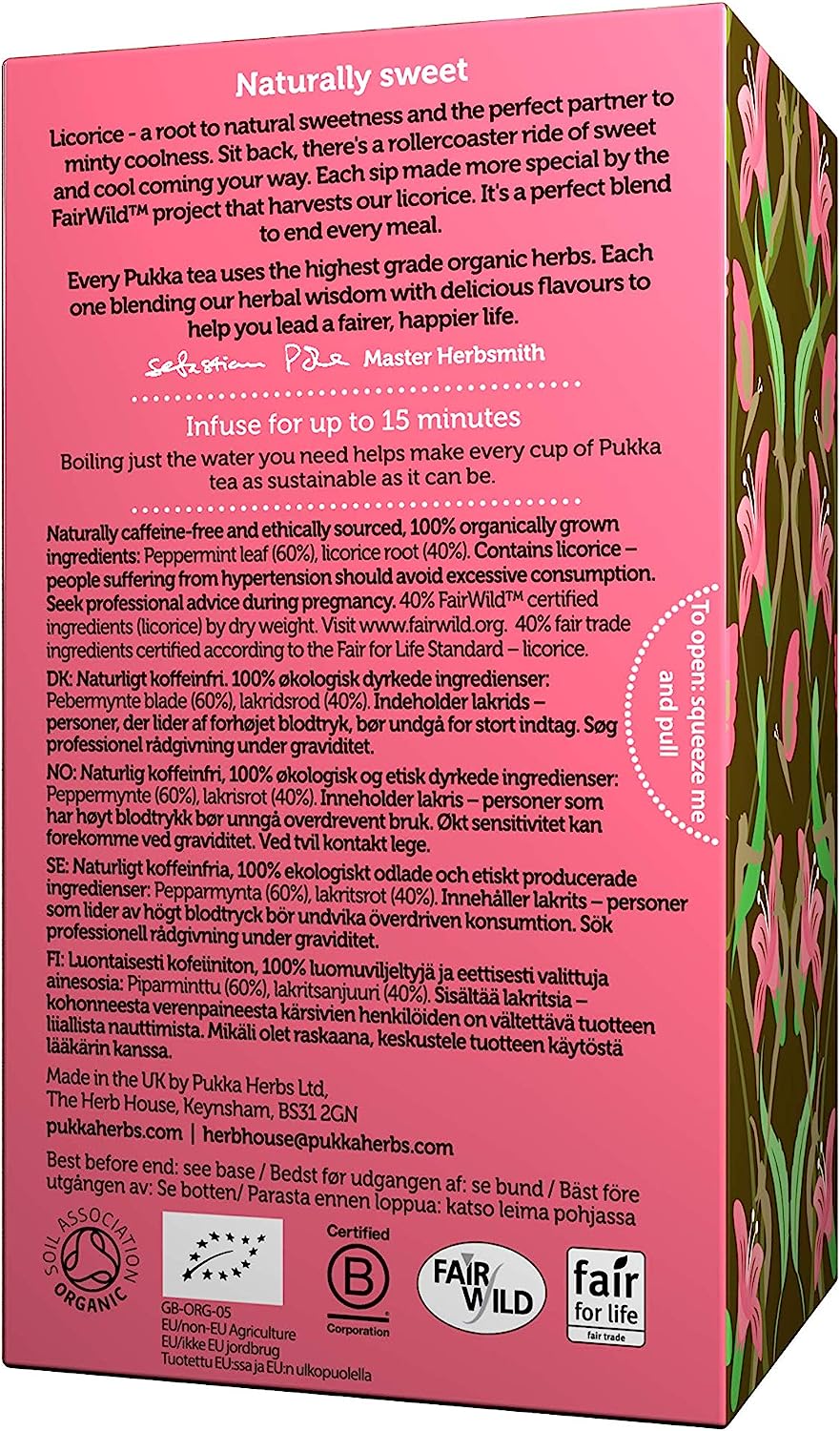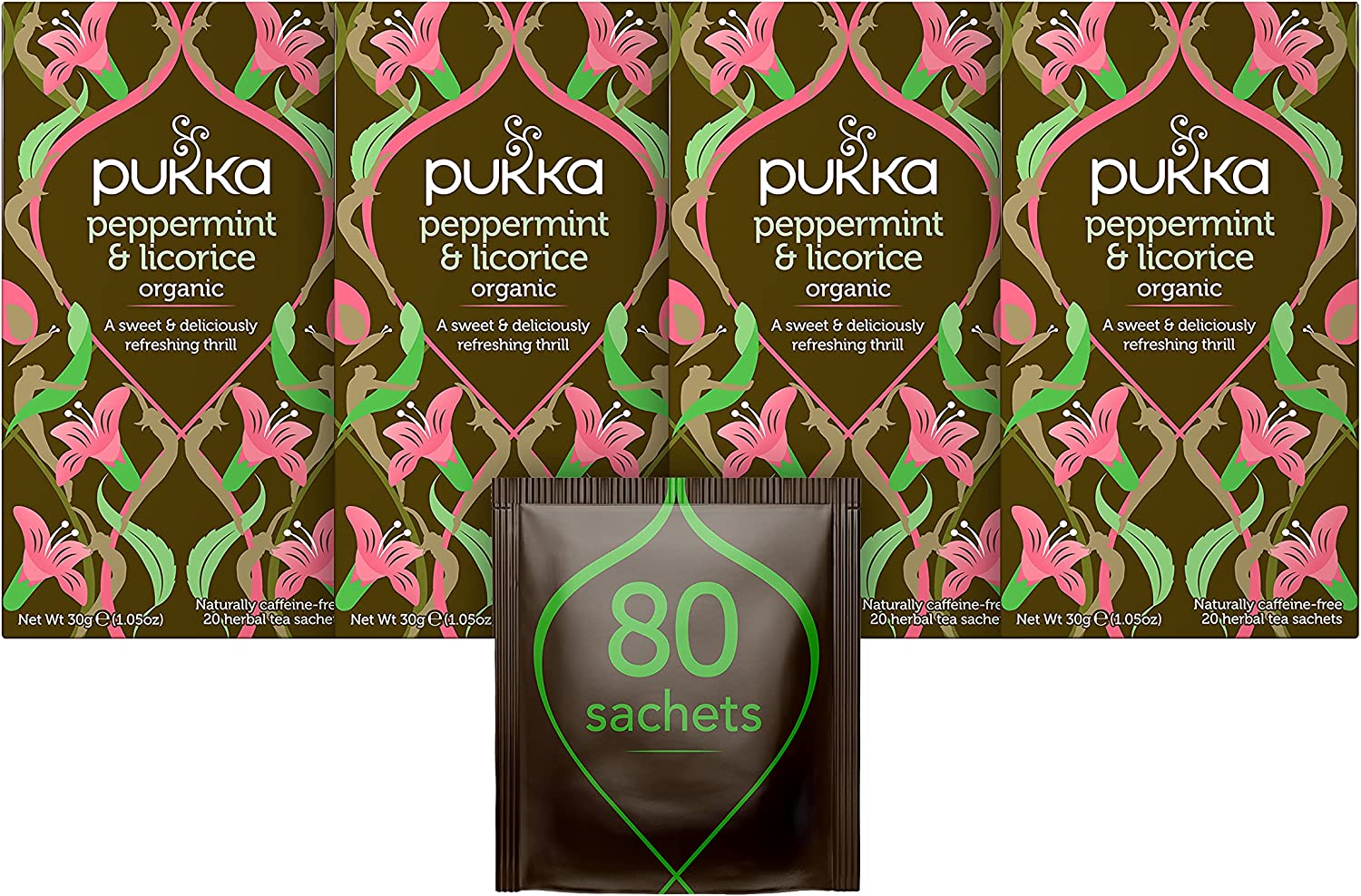 Pukka Herbs | Peppermint and Licorice Organic Herbal Tea | Perfect For After Meals | 20 Per Packs | 20-160 Sachets