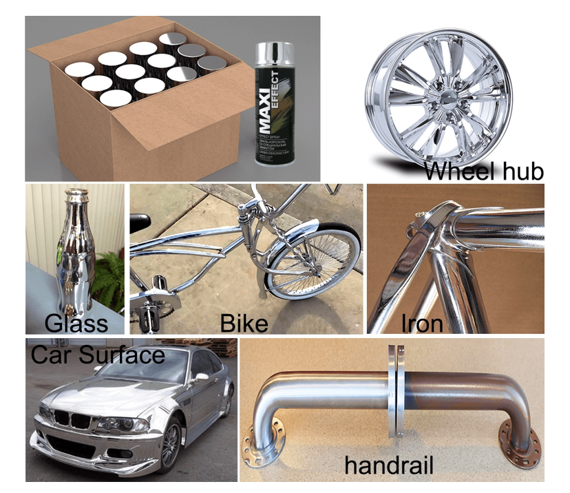 - Chrome effect – the silver acrylic spray paint from MAXI-EFFECT is suitable for decorative purposes. It gives surfaces a silver colour and a glossy finish. It is well suited for painting new objects and for restoration.