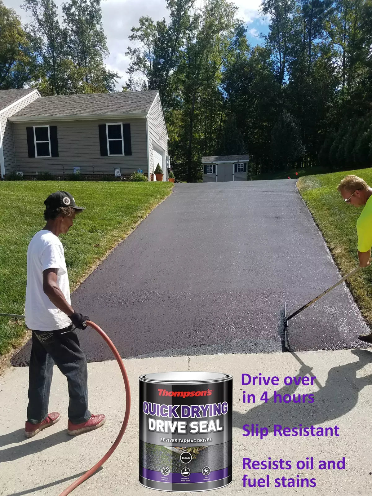 Thompson's Quick Drying Drive Seal revives old tarmac fast. It protects drives from oil stains and is ready for vehicle traffic after just 4 hours.