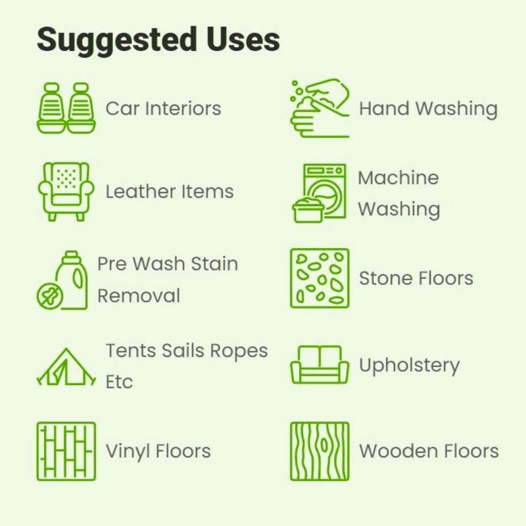 Dri-Pak Liquid Soap can be used to wash all fabrics, including delicates. It can also be used to clean leather, wood floors, laminate floors, hard surfaces, dishes, tiles and natural stone. You can also use it as a hand wash, shower gel and shampoo.