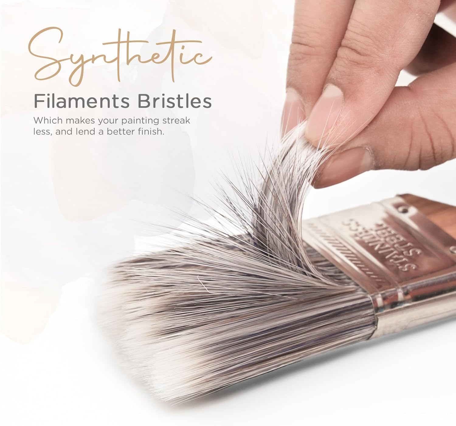 - Comfortable grip: Paint brushes feature smooth and sturdy wooden handles for a secure and comfortable grip, reducing hand fatigue and providing precise control which makes them Ideal for a range of applications, including furniture painting, wall painting, and outdoor painting