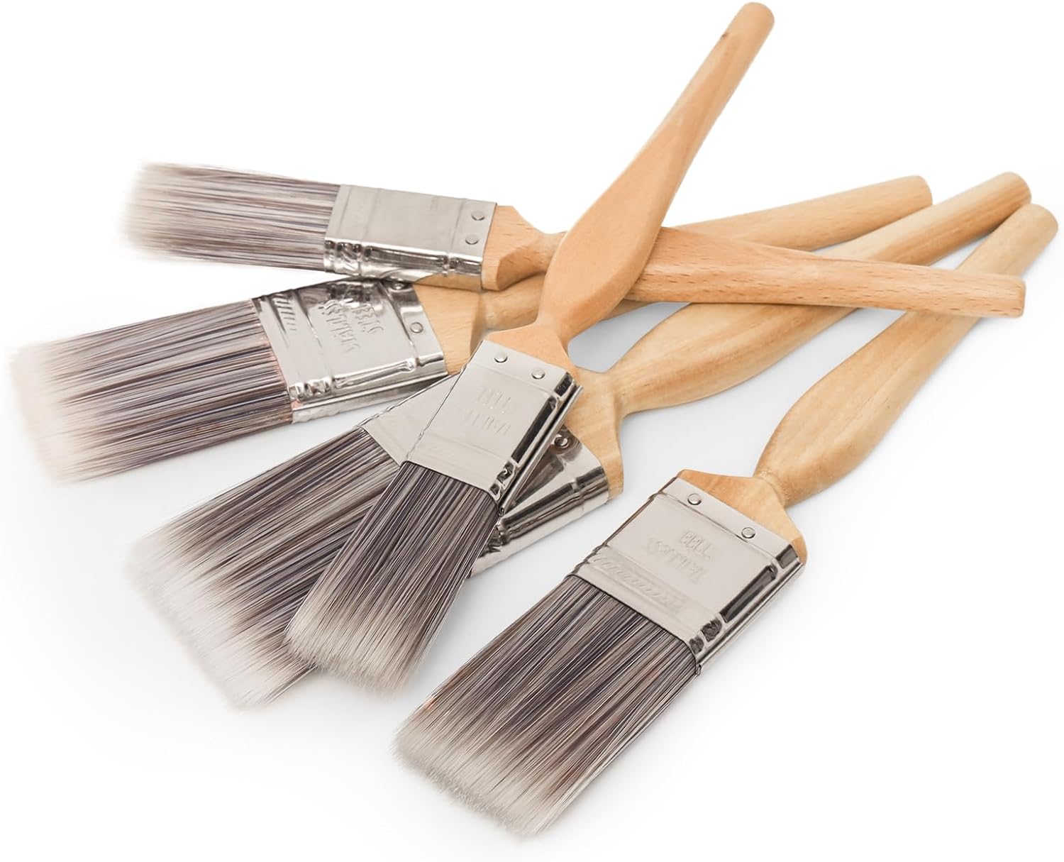 - Precision painting: This 5-piece brush set features a range of sizes for accurate and detailed work on various surfaces such as walls, ceilings, furniture, fence, cutting in around light switches plug sockets, & other narrow spaces and it works with most kinds of oil & water-based paints, stains, polyurethane, gloss, latex, resin, wallpaper paste, adhesive glue, or primer paints