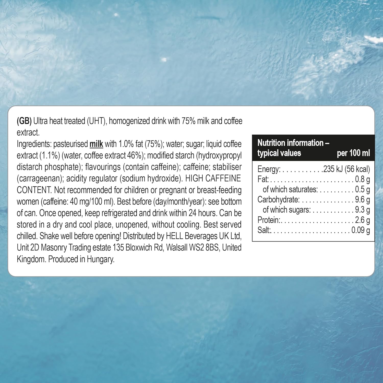 HELL Ice Coffee Latte | 24 x 250ml Cans Multipack | 40mg/100ml Caffeine | Contains Arabica Coffee Extracts | 75% UHT Milk | Ready To Drink