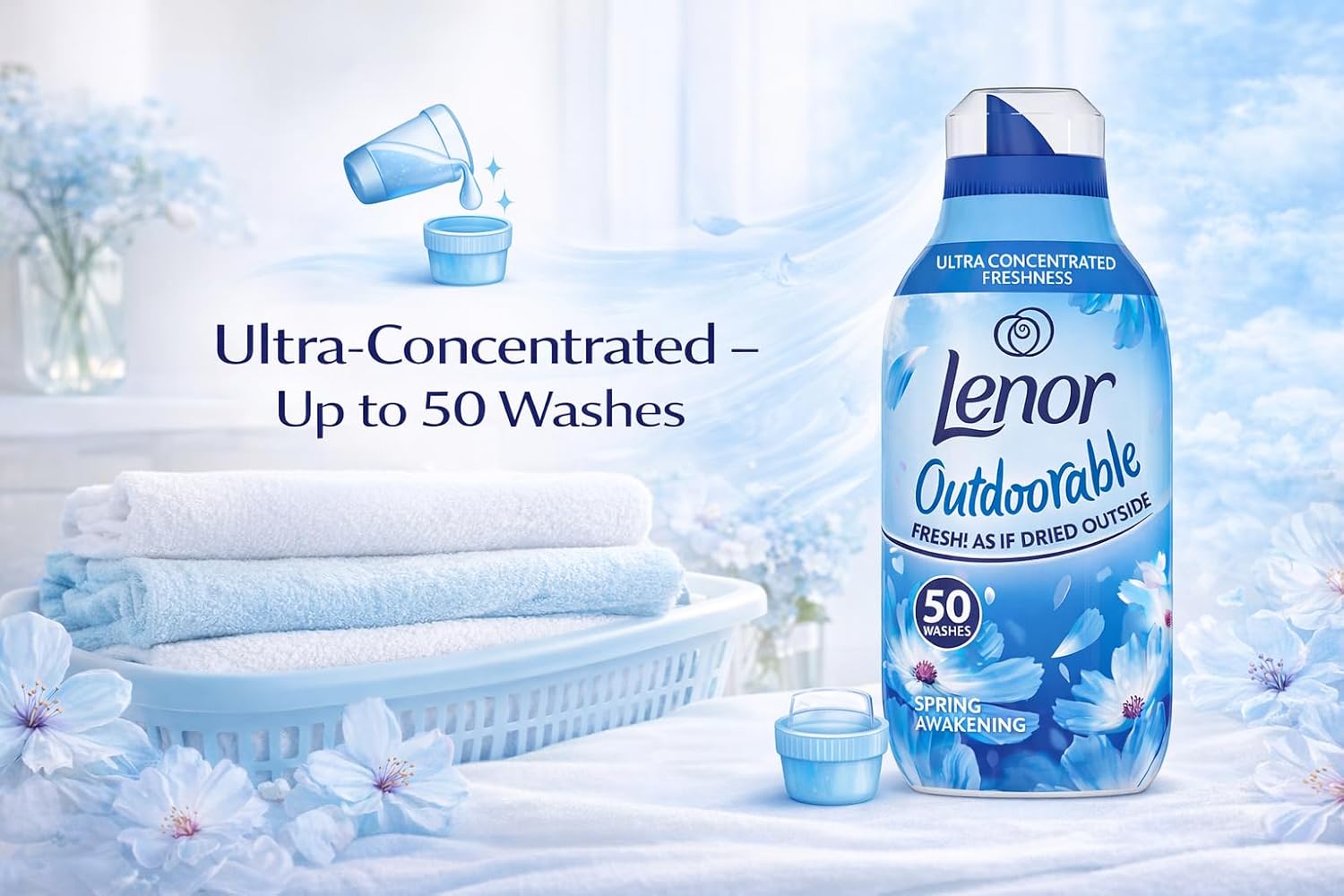 - Ultra concentrated fabric conditioner with long lasting freshness inspired by outdoor drying releases the iconic Spring Awakening scent into your laundry leaving clothes feeling clean soft and renewed.