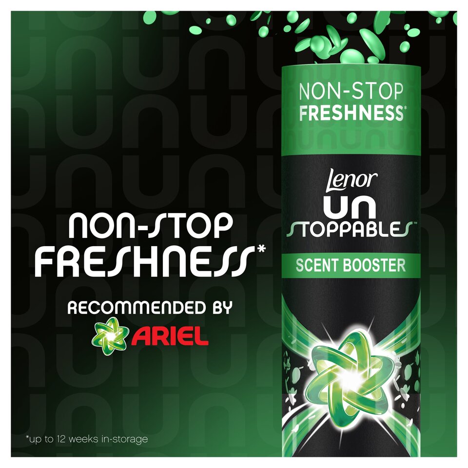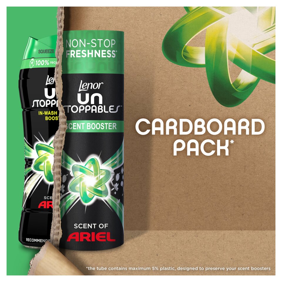 Discover Lenor Unstoppables in wash scent booster, formulated with long lasting freshness technology, to provide your laundry with a boost of non stop freshness up to 12 weeks in storage. Lenor scent experts recommend Unstoppables scent of Ariel if you really love the fresh scent of clean. Available in different scents, each Lenor Unstoppables fragrance injects freshness into every wash! Add it to every wash on top of your usual laundry routine. . Lenor Unstoppables in wash scent booster now comes in a moisture resistant, recyclable CARDBOARD PACK.