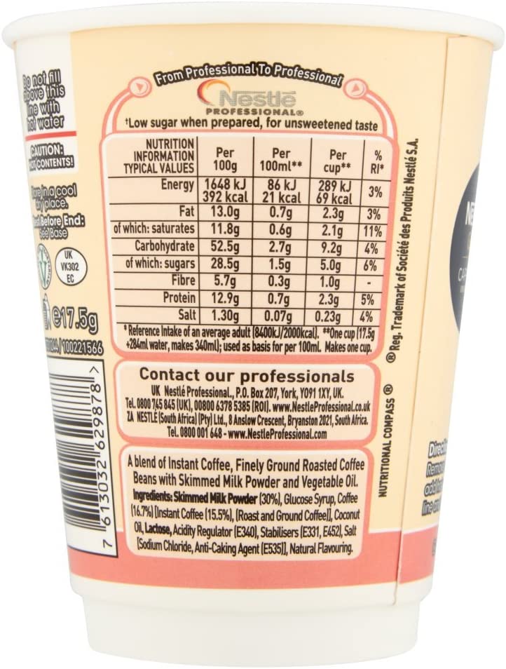 Made with a blend of Arabica and Robusta coffee Nescafé Gold Cappuccino is a delicious white, frothy coffee. Nescafé Gold Cappuccino cups are crafted to be convenient, so your customers can enjoy their deliciously frothy cappuccino moment on the go. They’re also able to savour their Nescafé and Go Gold Cappuccino cups knowing that they can have a sustainable coffee experience, as Nescafé Gold Cappuccino cups are now made with a recyclable cup and lid.