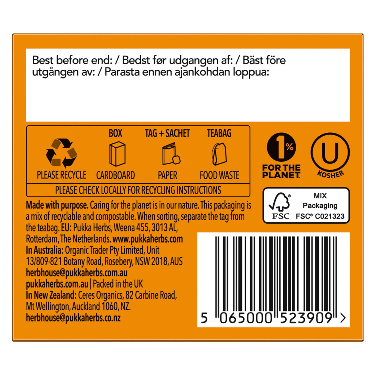 ginger root.12% FairWildTM certified ingredients (licorice) by dried weight.32% fair trade ingredients certified by IMO according to the Fair for LifeProgramme - fennel, licorice."