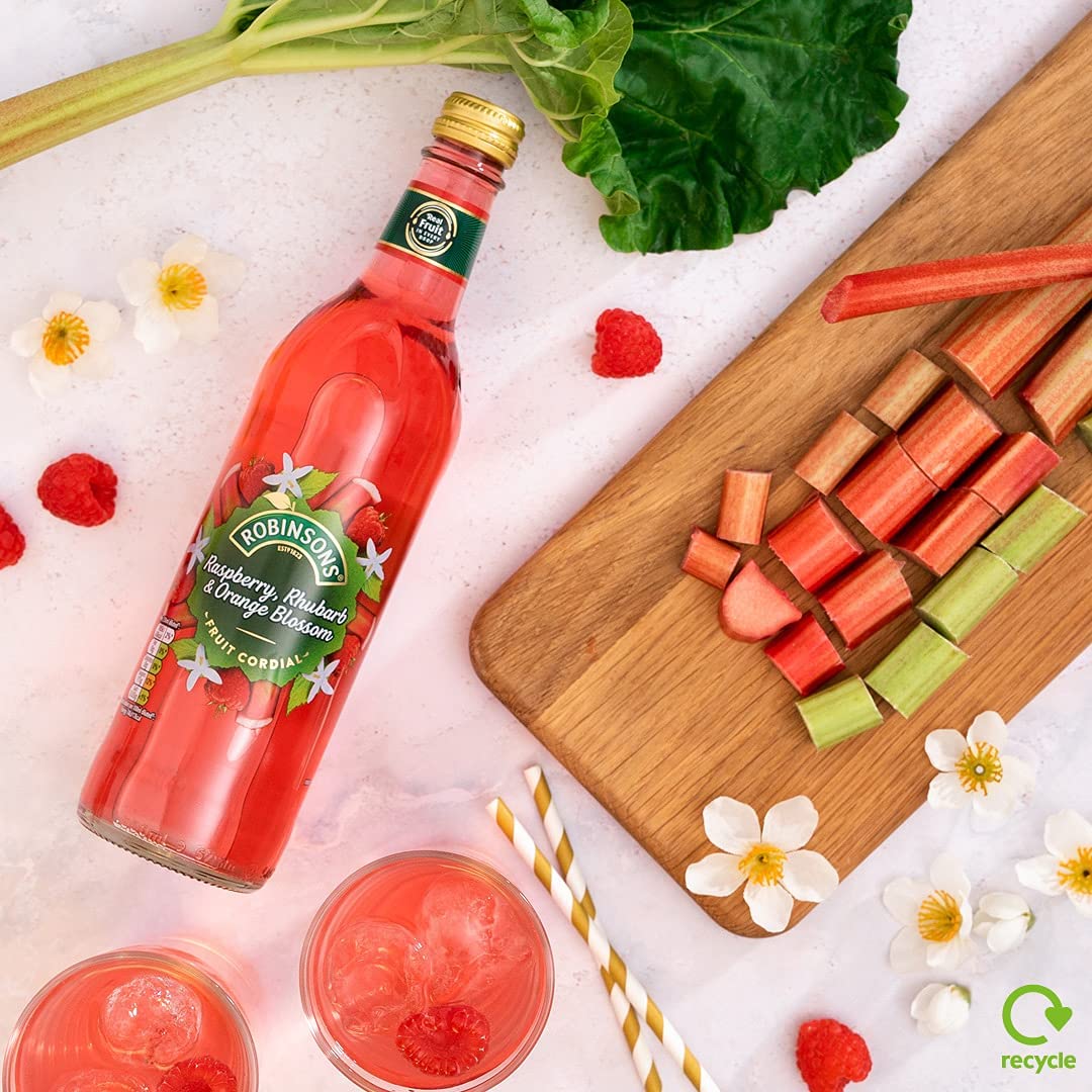 Robinsons Raspberry, Rhubarb and Orange Blossom Cordial is a British inspired recipe combining juicy raspberries, rhubarb and the sweet zesty aroma of orange blossom flowers for a cooling and refreshing drink, ideal for the whole family at any time of the day.