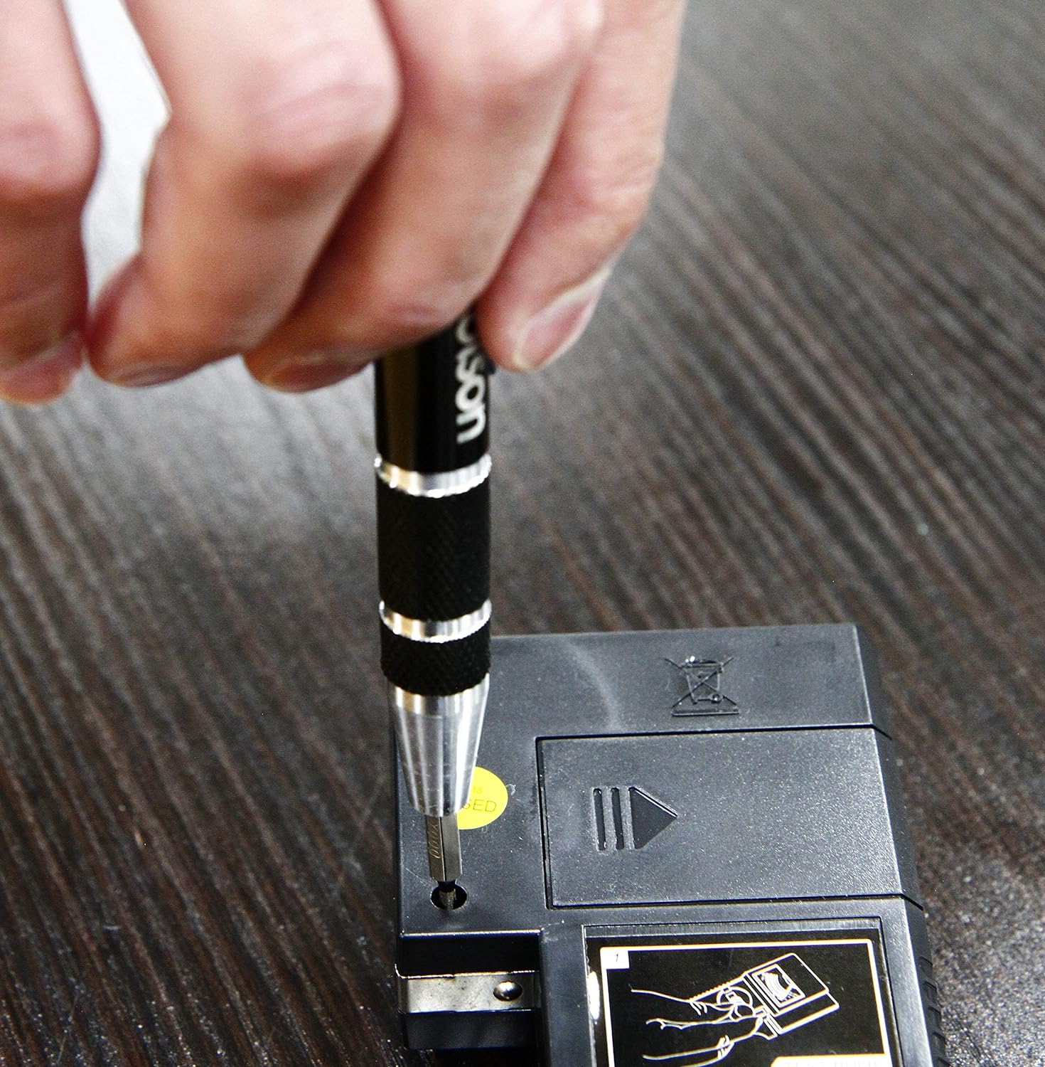 9pc Precision Screwdriver Ideal for small electronics, spectacles, jewellery etc. High quality aluminium driver with twist cap bit storage.