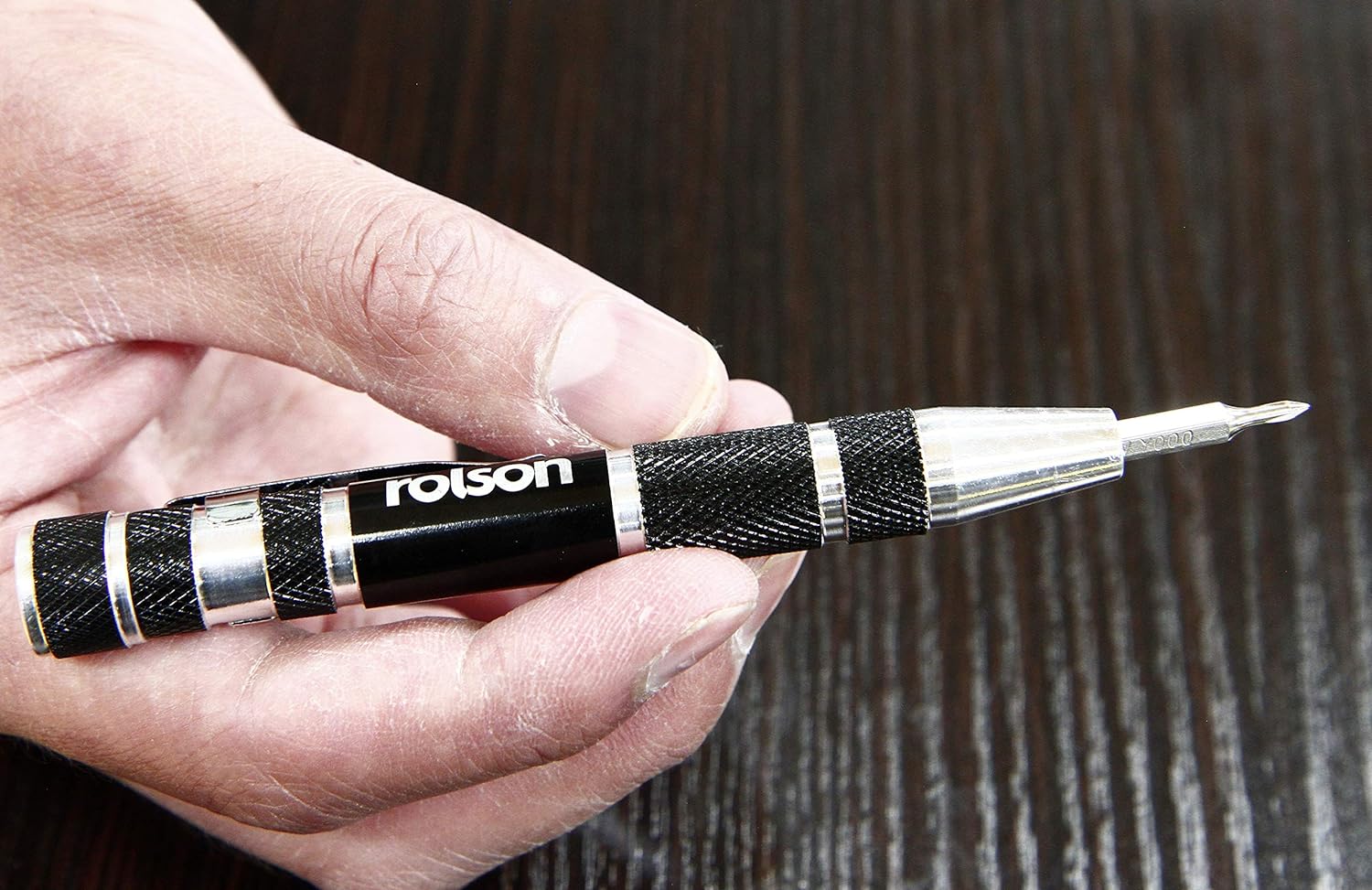 Powerful magnet holds bits securely. Includes PH000, PH0, PH1, Slotted 1, 1.5, 2mm, Star T6, T7, T8