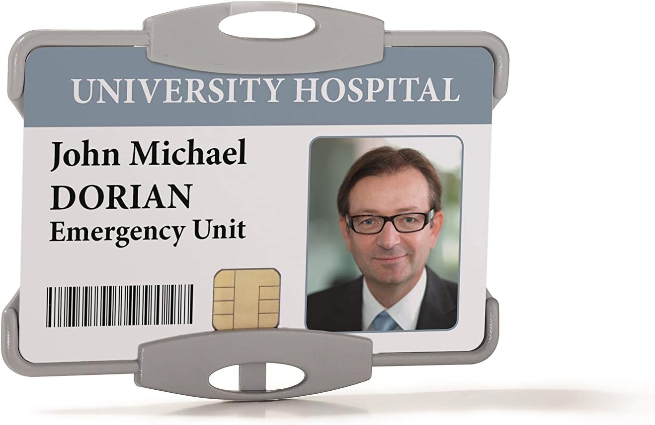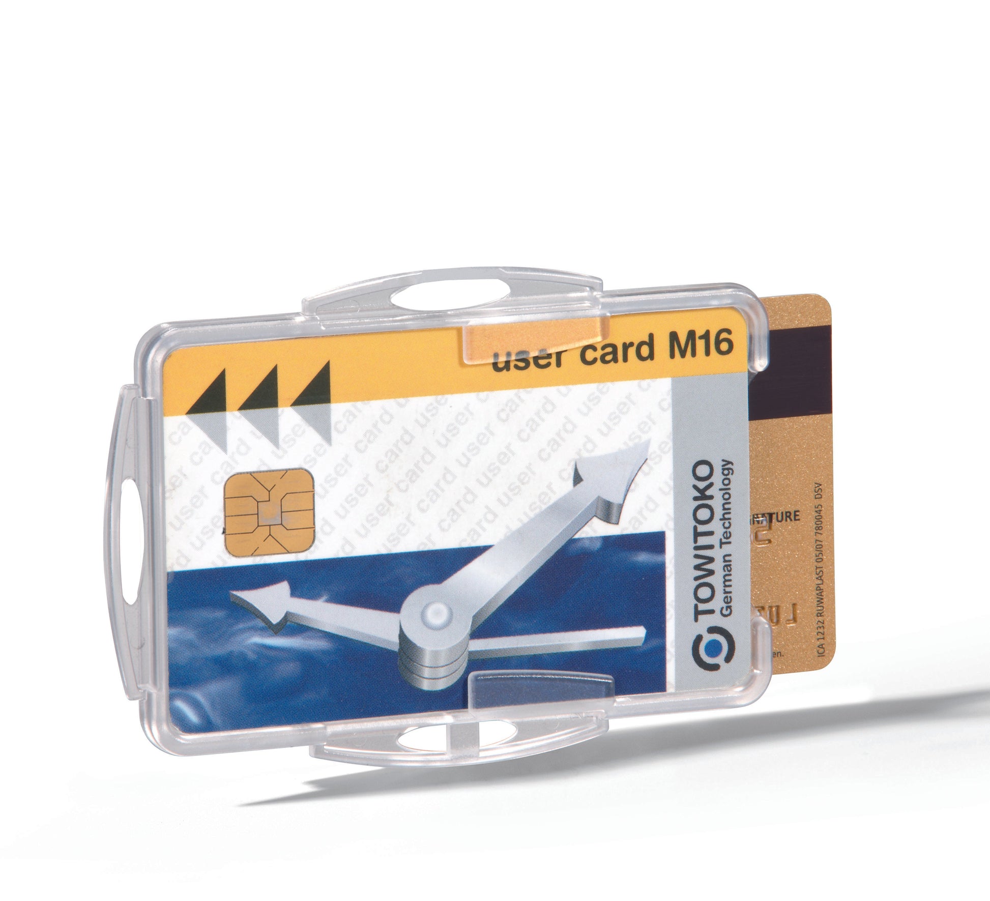 Durable Dual Security Pass Card Holder is perfect if you have to carry ID cards and security passes together so why not keep them in one place. The holder is double sided so allows you to hold passes or ID cards securely in place in portrait or landscape format without damaging the magnetic strips. Use with badge accessories such as textile lanyards and badge reels.