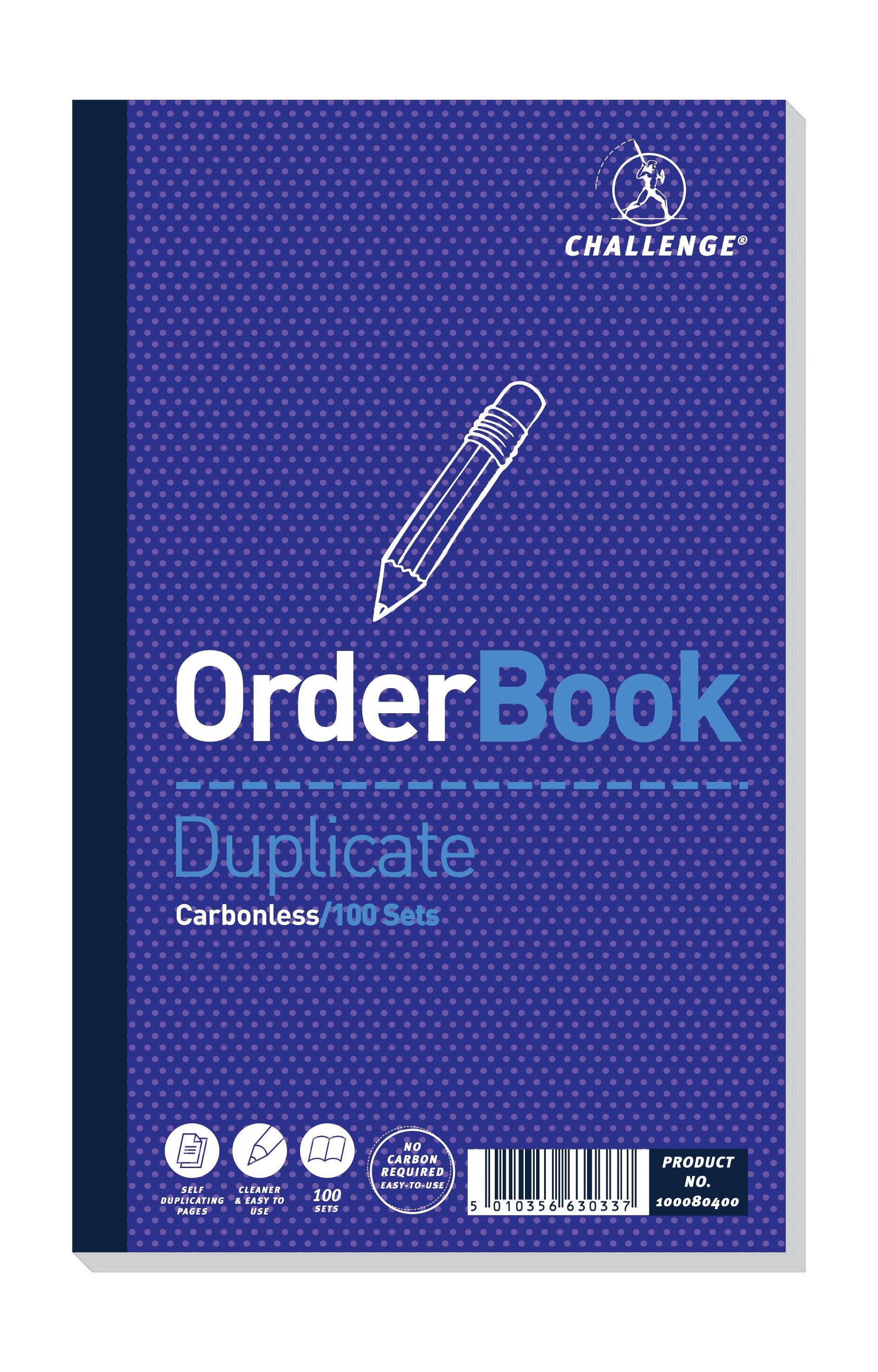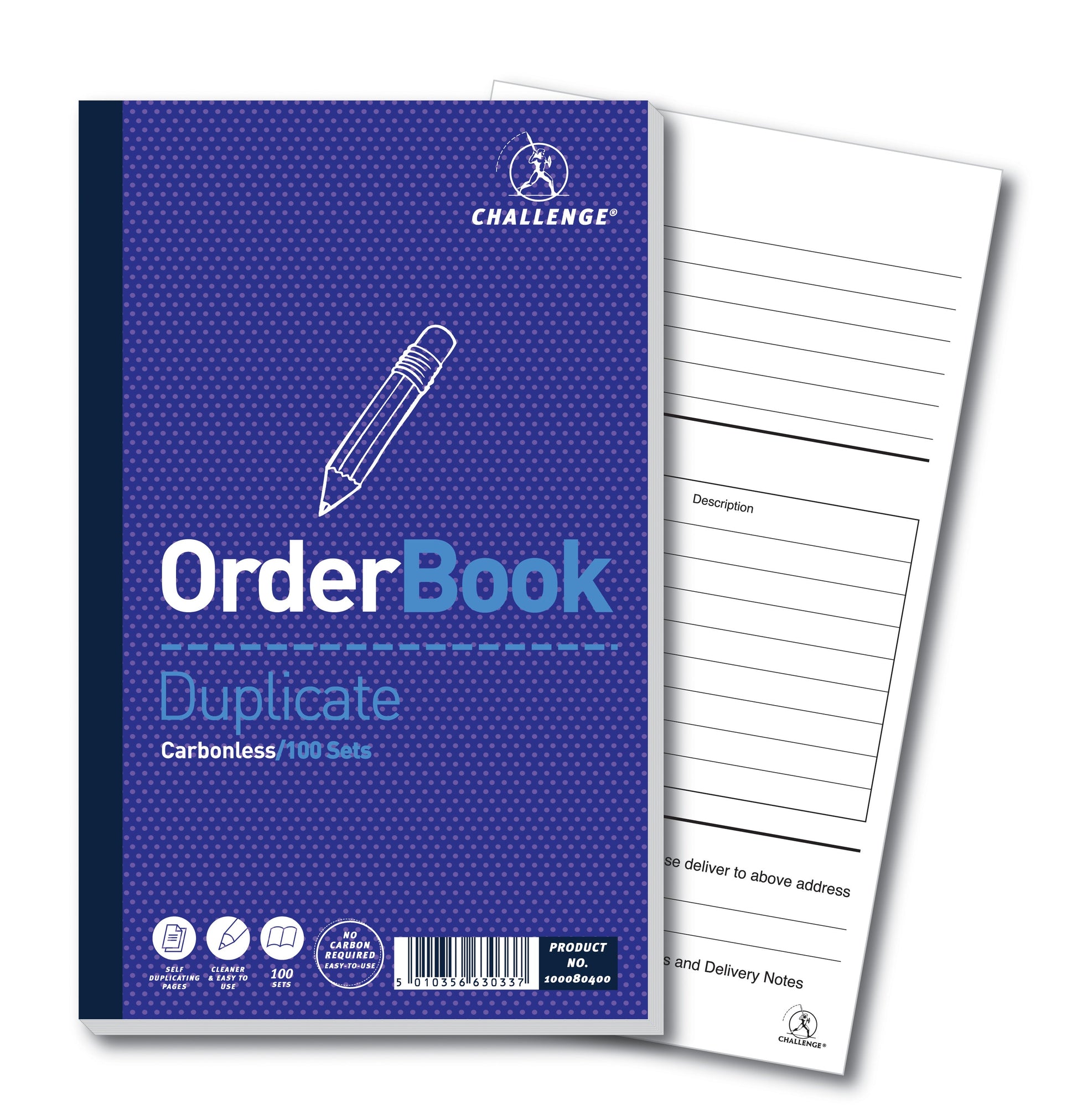 This Challenge Order Book provides carbonless duplicate copies for your records. Each book is tape bound and contains 100 numbered sets of duplicates. This pack contains 5 duplicate order books measuring 210 x 130mm.