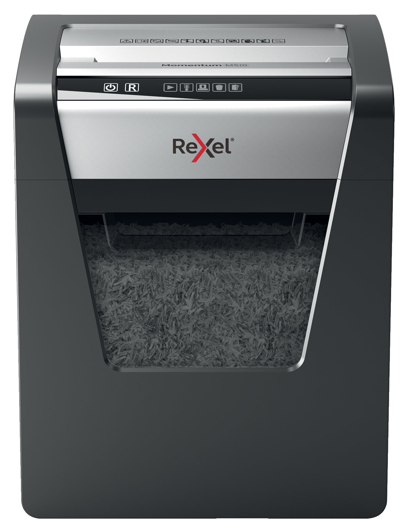 The Rexel Momentum M510 Paper Shredder shreds up to 10 sheets in one go, with a 2 hour continuous run time, making it ideal for a small office. The M510 comes with anti jam technology to guarantee uninterrupted shredding. P5 Micro Cut 2x15mm pieces for better security and more shredding before the bin becomes full. Quiet, with simple, intuitive, touch control buttons for easy operation and a generous 23L bin capacity (250 A4 sheets)