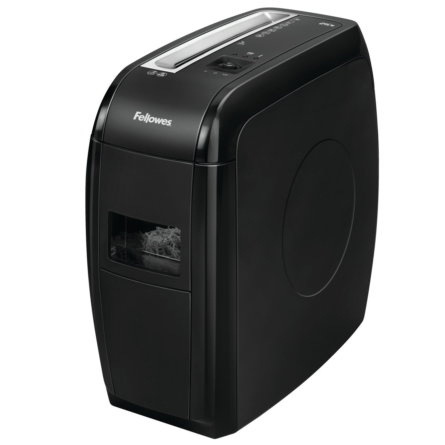 The Fellowes Powershred 21Cs is a personal, cross-cut paper shredder, designed with user safety in mind. An everyday use shredder it is suitable for individual users with medium shredding requirements, ideal for home use.This higher security machine also comes with the Fellowes patented SafeSense® Technology, this additional safety feature stops the shredder activity when hands touch the paper entry, providing extra peace of mind and assurance if used in your family home. The Fellowes 21Cs is a security (DIN) level P-3 shredder and can accept up to 12 sheets per pass, cutting it into 4 x 52mm cross-cut particles. Cross cut shredding gives a higher level of security and protection against information and identity theft, so you can be confident that documents such as household bills and bank statements are disposed of securely. It has a space - saving compact design that takes up little space and can shred continuously for up to 5 minutes non-stop with an average shred speed of 2 metres per minute. The 21Cs has a 15 litre bin with an easy lift head for hassle-free, easier waste disposal. This Fellowes shredder can dispose of staples, paperclips and credit cards and comes with a 2 year full warranty for machine and a 5 year warranty for the cutter.