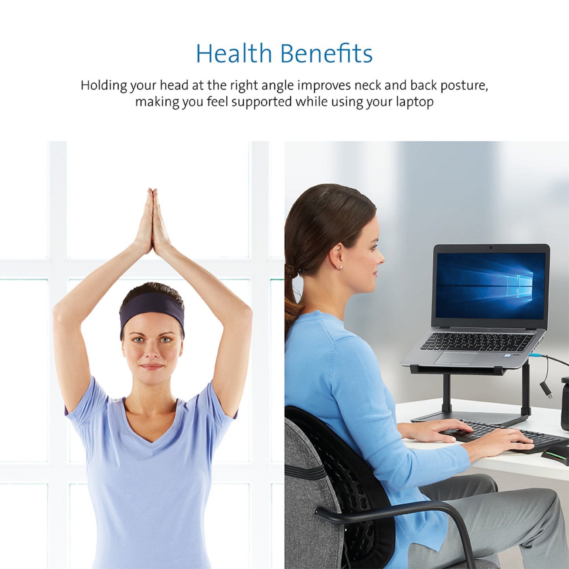 When you need to lift your laptop up to eye level, there’s no better ergonomic solution than the SmartFit Laptop Riser. Kensington has been a leader in ergonomics for more than 20 years and the laptop riser features the SmartFit System, which allows you to find your personal height setting for optimal comfort to reduce neck and back strain while you work. It also utilizes Zero Footprint mounting so you can mount a compatible Kensington universal dock underneath the laptop platform, keeping your desktop less cluttered.