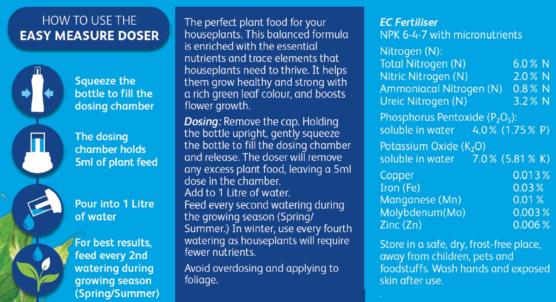 Westland Houseplant Feed is the perfect plant food for your houseplants. It helps them grow healthy and strong with a rich green leaf colour, and boosts flower growth. It has an easy squeeze measure dosing cap for quick and easy feeding too.