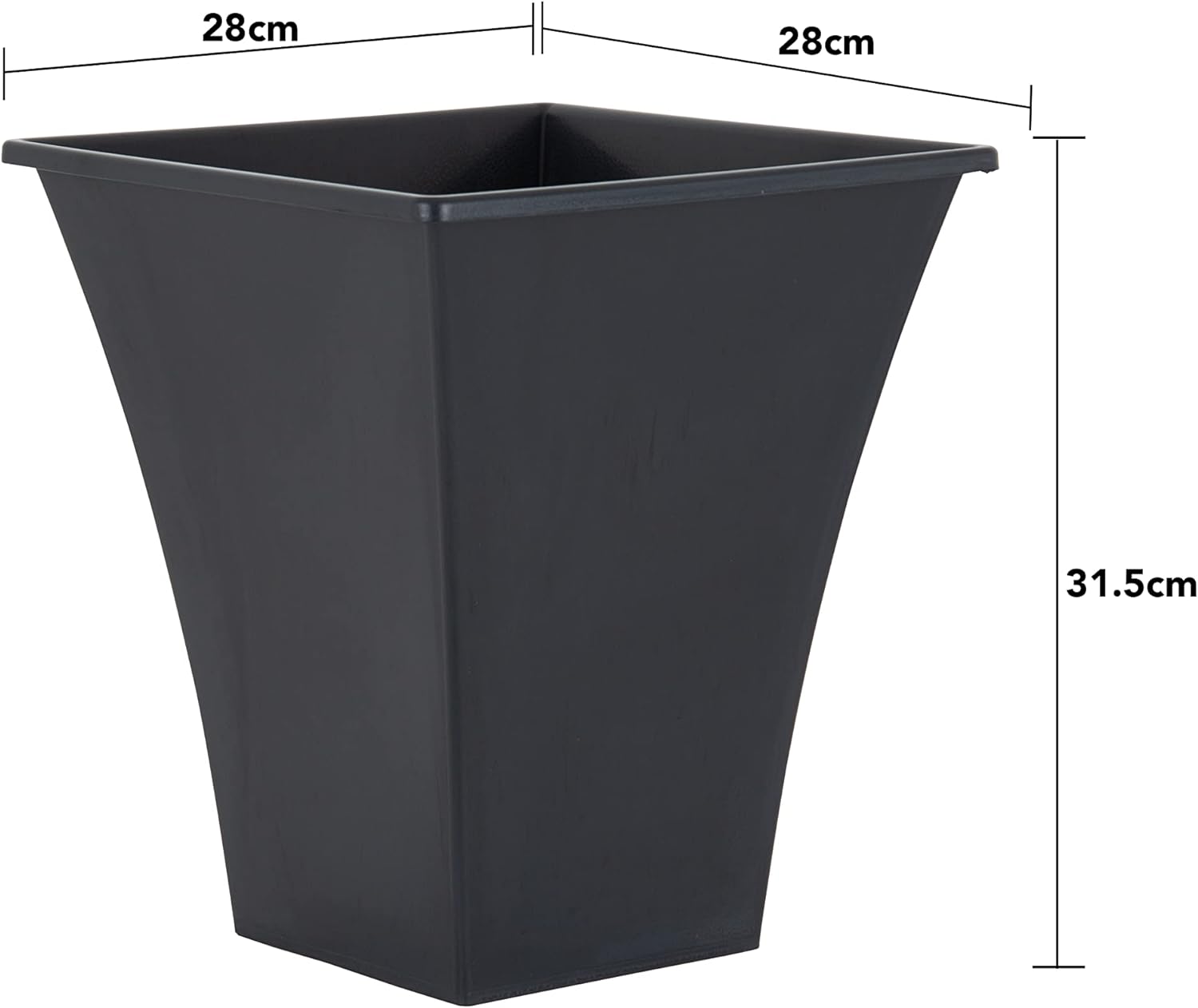 Metallica square pot in black colour. This pot is suitable for both indoor and outdoor use being weather resistant and lightweight.